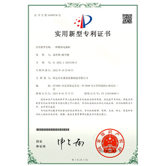 一種模塊電源柜實(shí)用新型專利證書