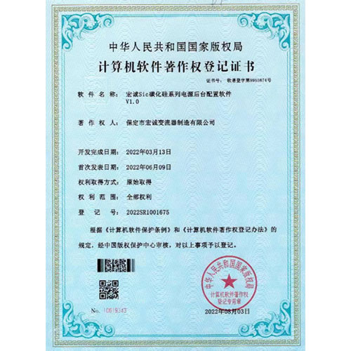 計(jì)算機(jī)軟件著作權(quán)登記證書--Sic碳化硅系列電源后臺(tái)配置軟件V1.0
